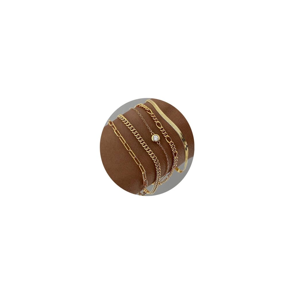 If you’re looking for a stylish and affordable set of gold bracelets, DEARMAY Gold Bracelets for Women are a great choice. The set includes four different styles of bracelets, each made of 14K real gold. The bracelets are lightweight and comfortable to wear, making them perfect for everyday use.