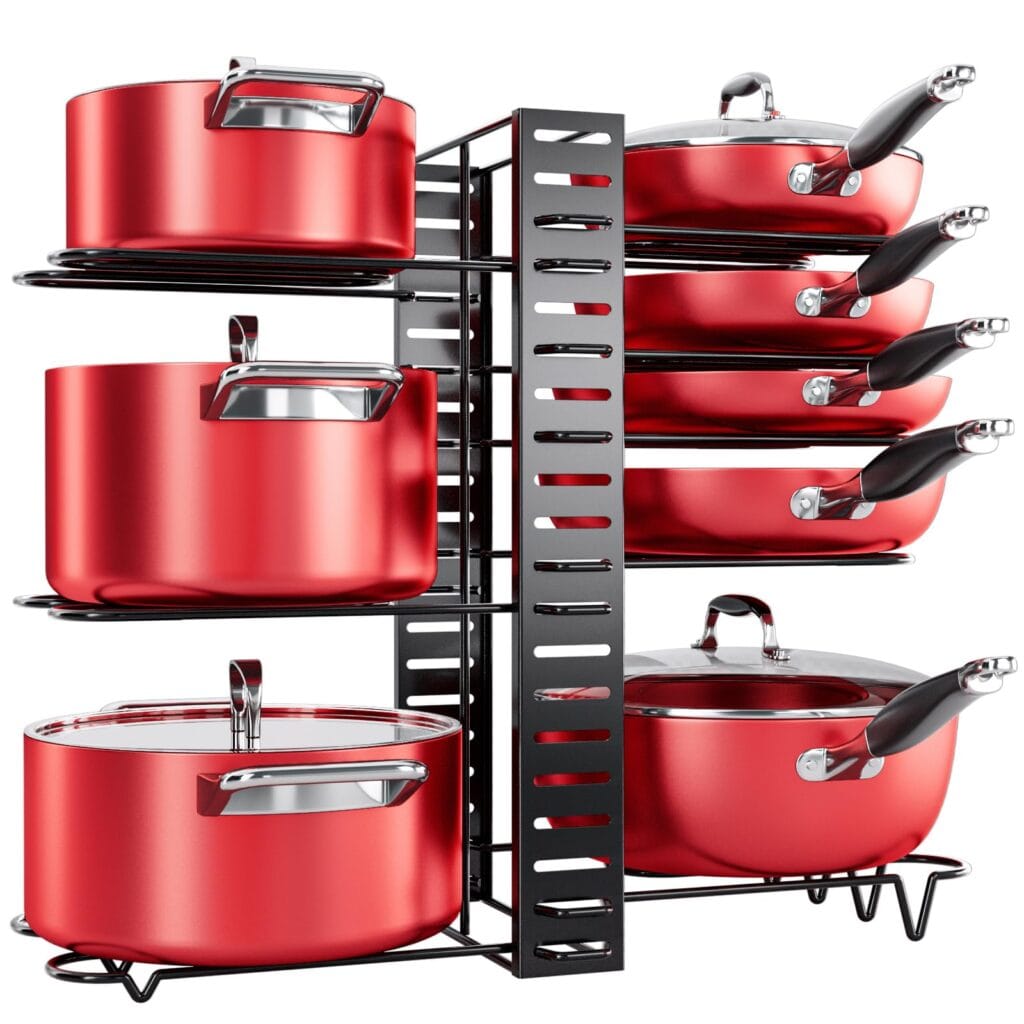 We highly recommend the MUDEELA Pots and Pans Organizer Rack under Cabinet for anyone looking to declutter their kitchen. This product is easy to install and offers exceptional stability for holding most pots and pans without bending or warping.